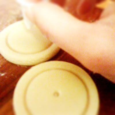 More about the plans some other time... but as a sneak preview to them... Shortbread bicycle wheels. The recipe still needs some tweaking.. so I won't put it up yet, but they turned out pretty cute. Inspired by these buttons...